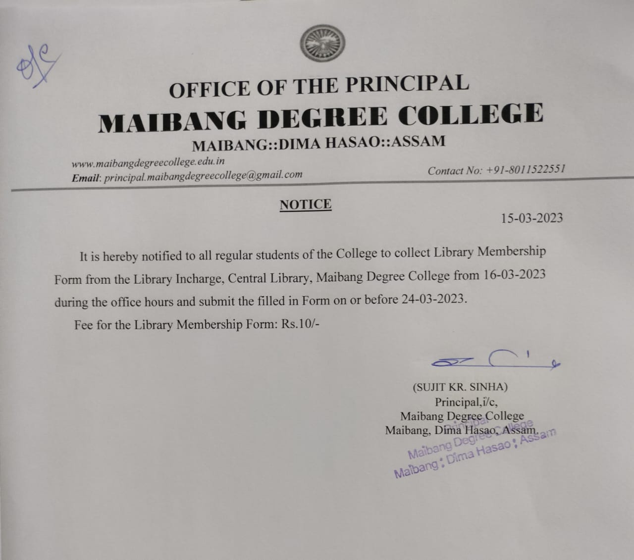 Students, Teachers & Non-teaching Staff of the College are requested to view the college website http://www.maibangdegreecollege.edu.in for regular updates. View 2023-03-16